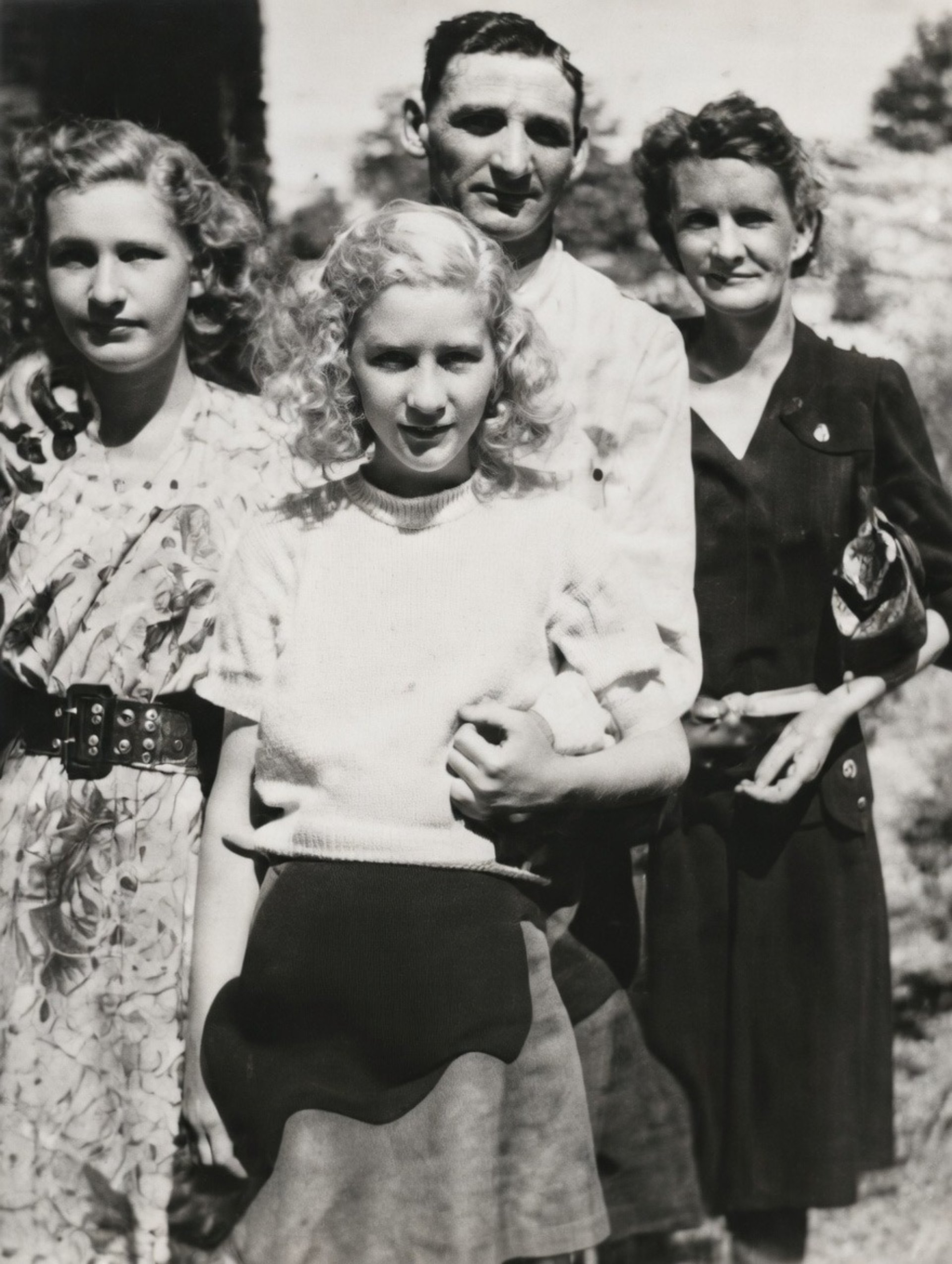 A side-by-side comparison of a faded old family photo and its vibrant restored version.